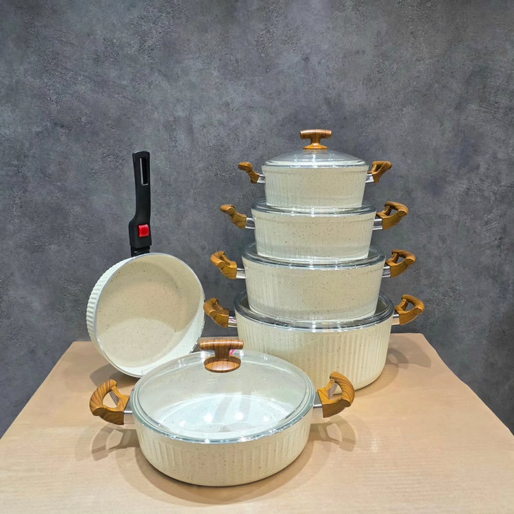 سرویس قابلمه ۱۱ پارچه Eviz+ مدل السا جنس لدنه چدن با پوشش گرانیت سخت تحت لیسانس ترکیه همراه با ۱۸ ماه گارانتی طلایی تعویض شامل: قابلمه به سایزهای ۲۰ | ۲۴ | ۲۸ | ۳۲ تابه دودسته سایز ۲۸ تابه تکدسته ماکرو سایز ۲۴ رنگبندی جذاب: کرم | مشکی | طوسی | شامپاینی | بادمجونی