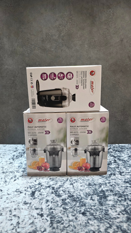 آب مرکبات گیر تمام اتوماتيک مایر بدون دخالت دست تمام آب میوه تون رو میگیره تحت لیسانس آلمان توان 200W قدرتمند آب گیری تا ۹۰ درصد دارای ۲ سرعت + عملکرد اتوماتیک قابلیت آبگیری انار بدنه پلاستیک مقاوم دارای محفظه چفتشونده مجهز به سینی چکهگیر موجود در ۳ رنگ جذاب: مشکی خاکستری نقرهای