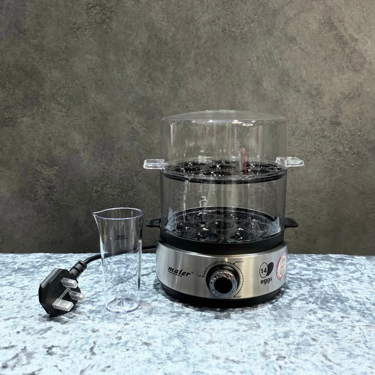 سریعترین صبحونه با تخم مرغ پز مایر تخم مرغ پز مدل ۳۱۷ مایر توان مصرفی: 400 وات ظرفیت بزرگ: 14 تخممرغ همزمان قابلیت تنظیم درجه پخت درب شفاف برای مشاهده روند پخت قفسههای قابلجابجایی و شستوشو کلید ولومی روشن/خاموش بدنه استیل ضد زنگ مقاوم پیمانه اندازهگیری آب همراه دستگاه