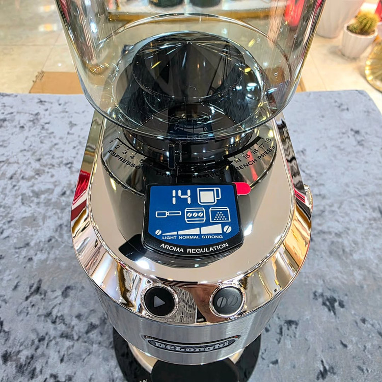آسیاب قهوه دلونگی Dedica 521 با طراحی شیک و کیفیت عالی، انتخابی فوقالعاده برای قهوهدوستهاست. محفظه ۳۵۰ گرمی + ۱۸ حالت آسیاب مختلف و ۳ سطح تنظیم قدرت برای اسپرسو، قهوه فرانسه و Drip Coffee. کنترل پنل LCD کاربرپسند برای انتخاب تعداد فنجانها تنها با لمس یک دکمه. تیغههای قدرتمند + قطعات قابل شستشو = ماندگاری و تمیزکاری راحت. جمعکننده سیم برق زیر دستگاه برای نظم بیشتر. با Dedica 521 قهوه تازه، هر روز در دسترس شماست!